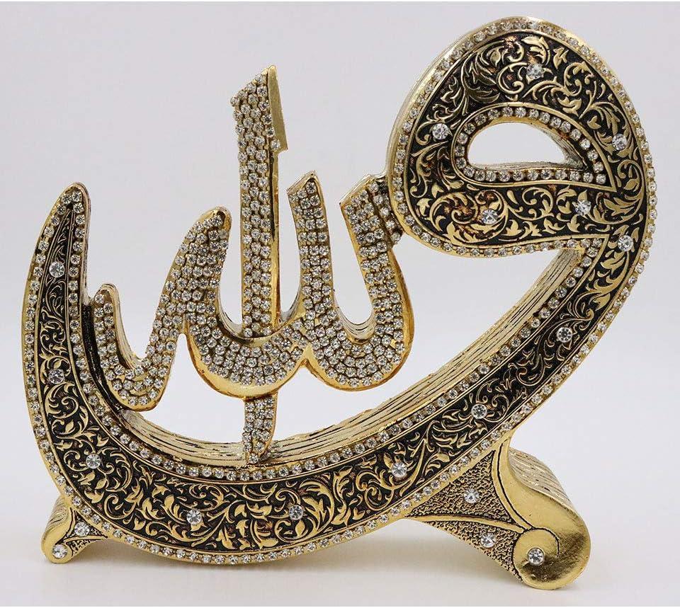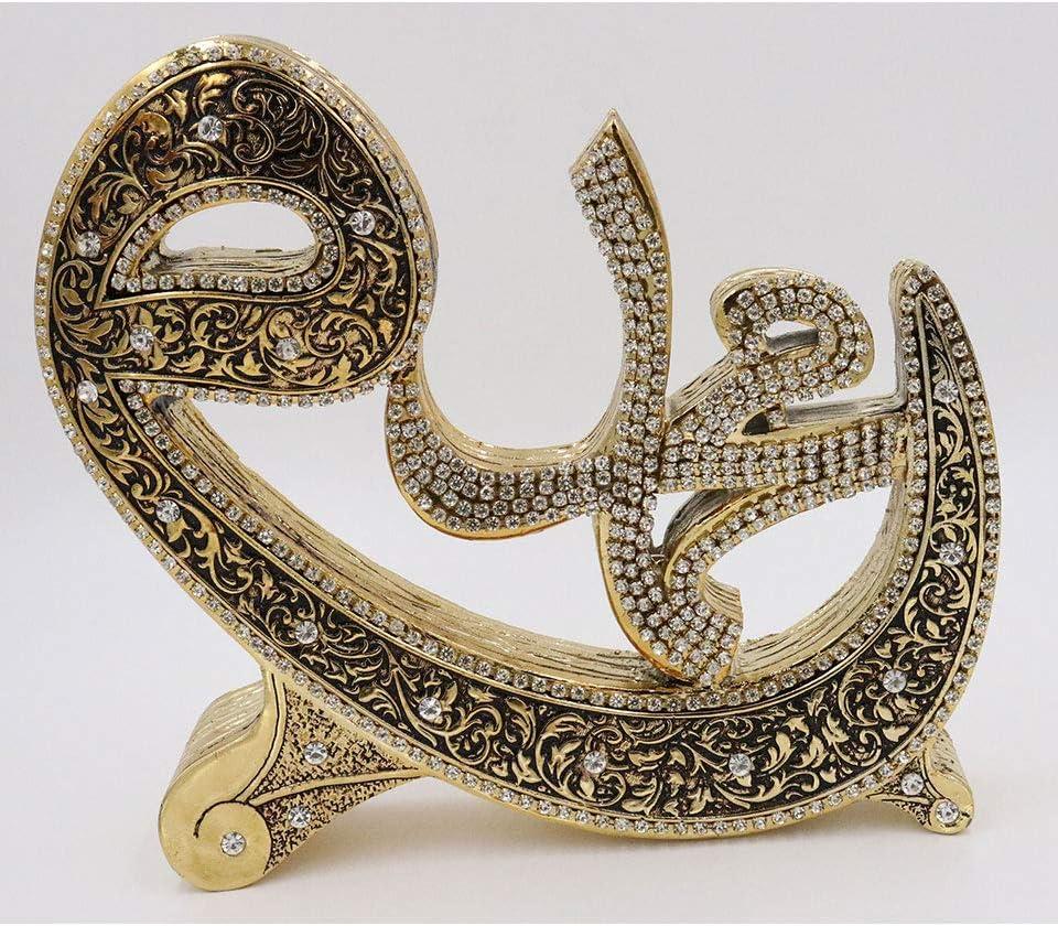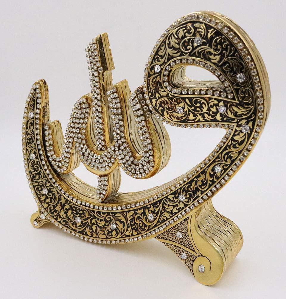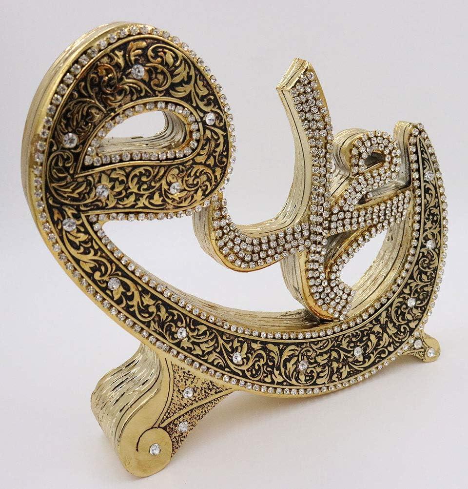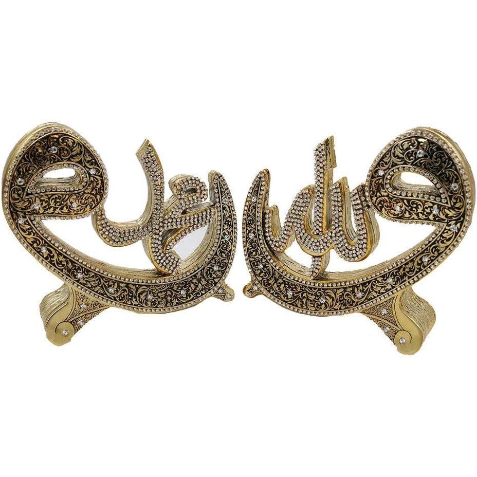 The newest addition to our home decor line is here, and it's a beautiful Allah & Muhammad set! Showcased within each piece is either Allah or Muhammad in intricate Arabic calligraphy, sitting so elegantly on a Waw shaped base. The rhinestones embedded within each word make this set a showstopper! The finishing touch comes in the finely detailed vine design flowing throughout, giving both pieces a one of a kind look that will make the perfect addition to your home, or the perfect gift for friends and family! Material: Resin. Size of each piece: 17cm tall x 20cm wide (6.7inx7.9in). Due to the manufacturing process and hand-finished detailing, this item may have minor imperfections. Made in Turkey.