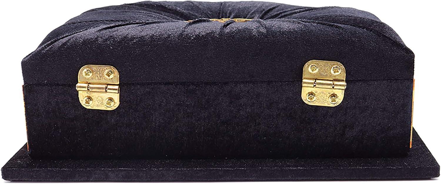 This luxurious velvet gift case keeps your Holy Quran in the place of honor and respect it deserves! Beautiful, well made piece with elegant finishing touches. Features an acrylic cutout on top that says “Allah” in Arabic calligraphy. On the inside of the box, it says “Bismillah.” Includes Quran pictured, with cover that matches the box. Also includes tesbih prayer beads as pictured. Dimensions: 24 x 32cm, 10cm tall (9.5 x 12.5in, 4in tall). Made in Turkey.