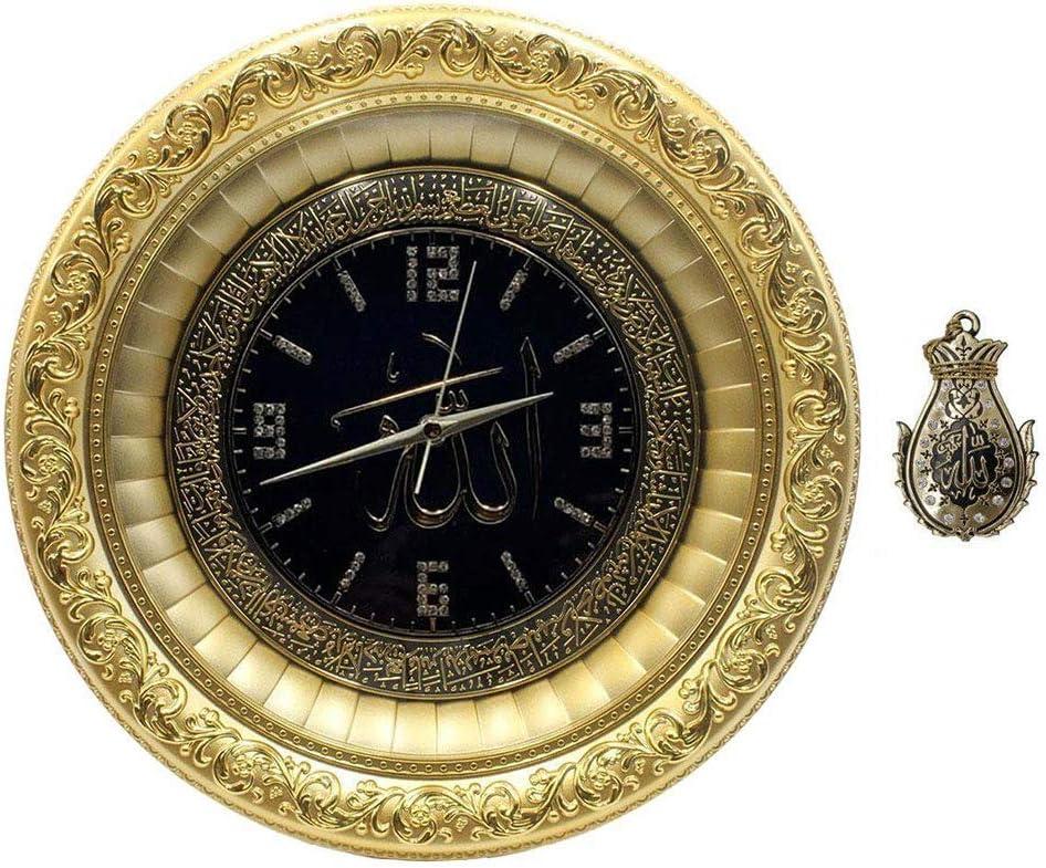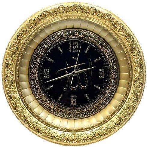 Features 'Allah' in Arabic calligraphy in the center, with Ayatul Kursi verse circling around the clock face. Also features intricate detailing on the frame.