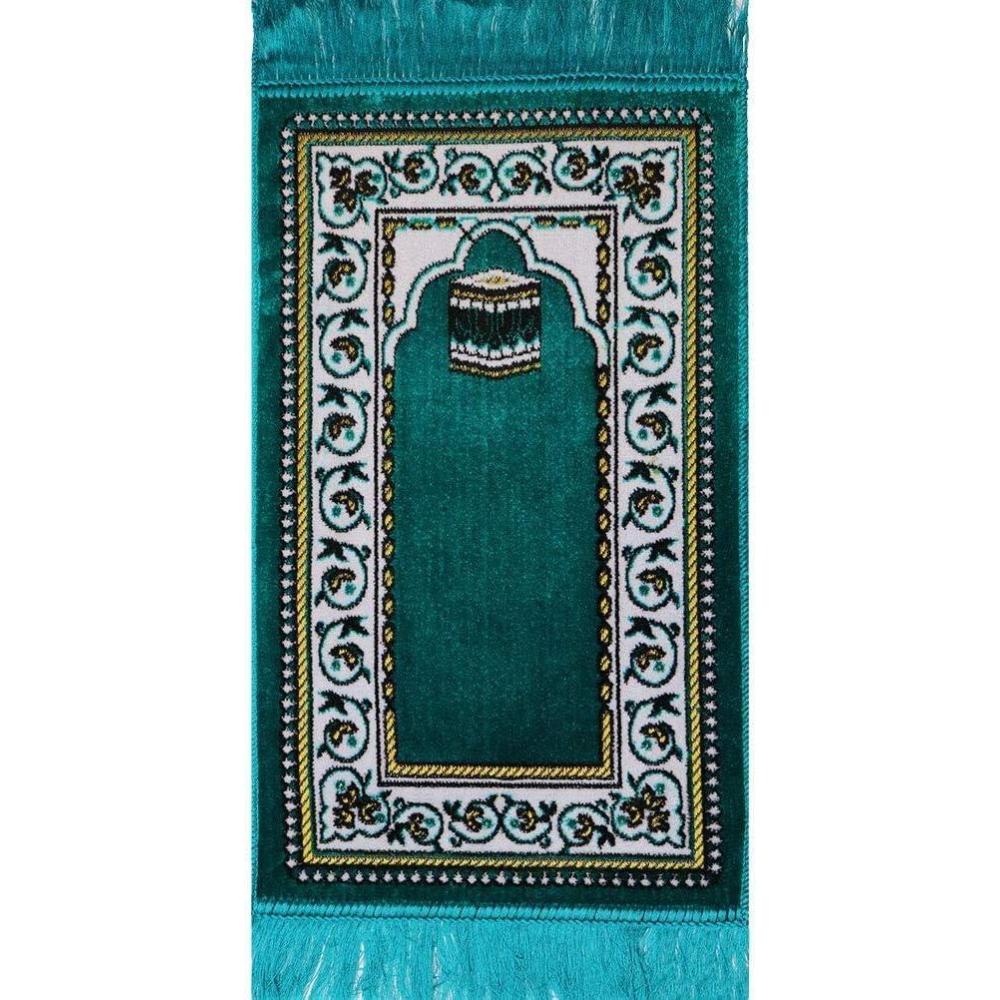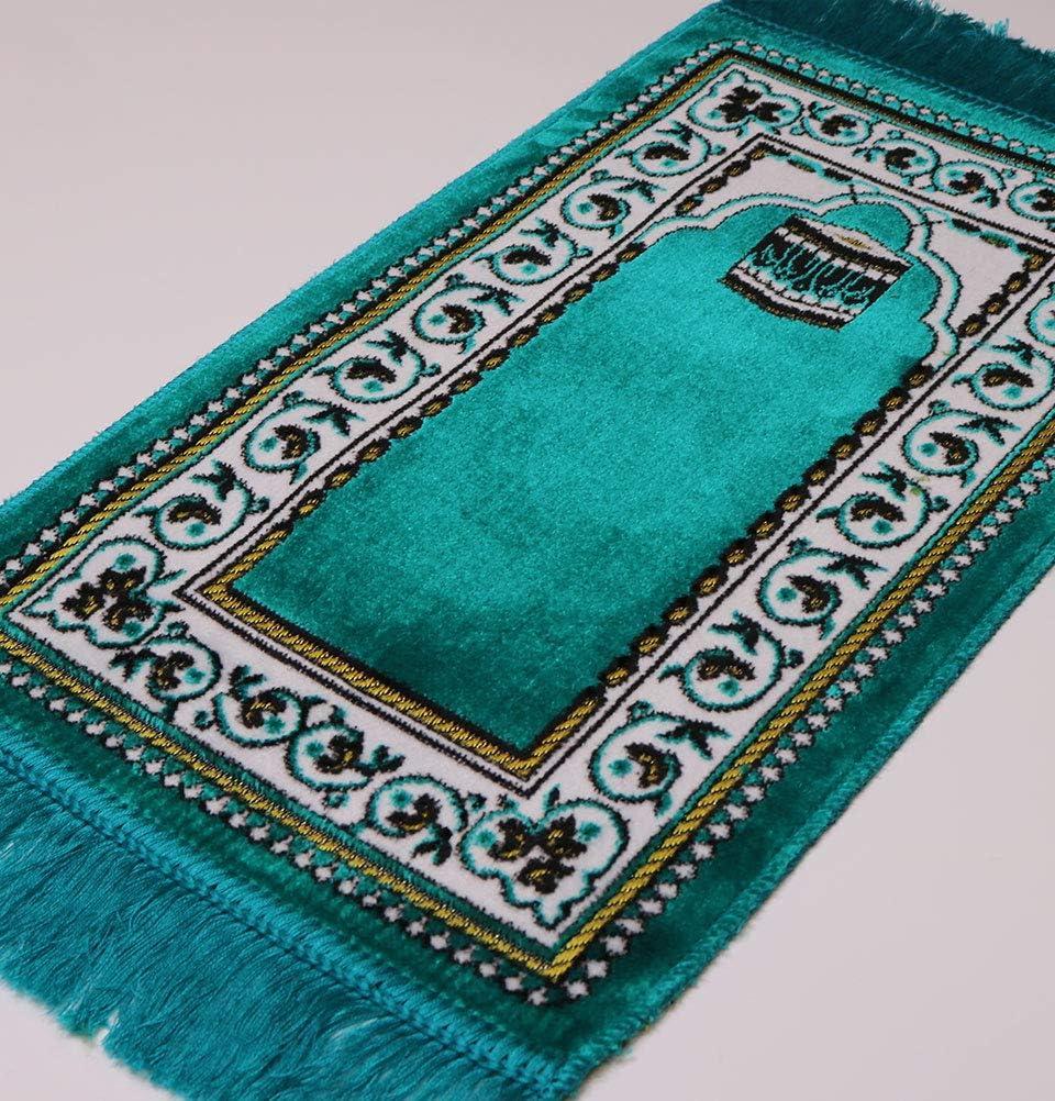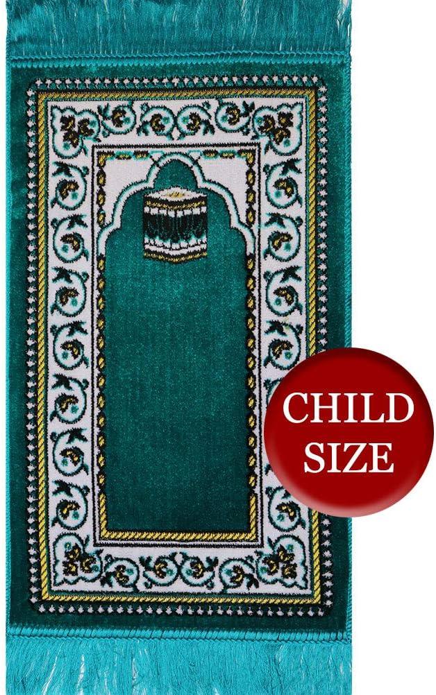 A small and beautiful prayer rug, perfect for babies and toddlers! Features Islamic motif on a lovely rug. Made from a soft velvet with a textured design! Approx size: 35 x 60cm (13.5 x 23.6 in) with 6cm fringe on each end. Made in Turkey.