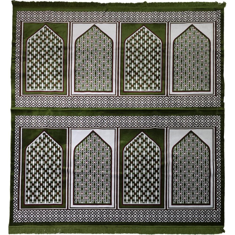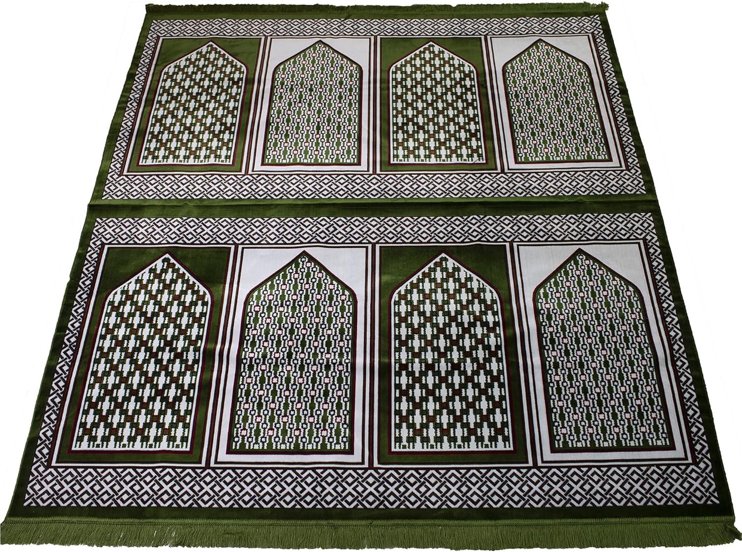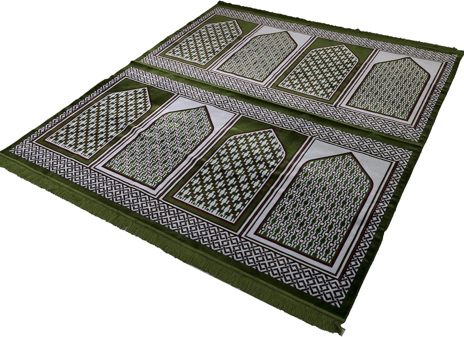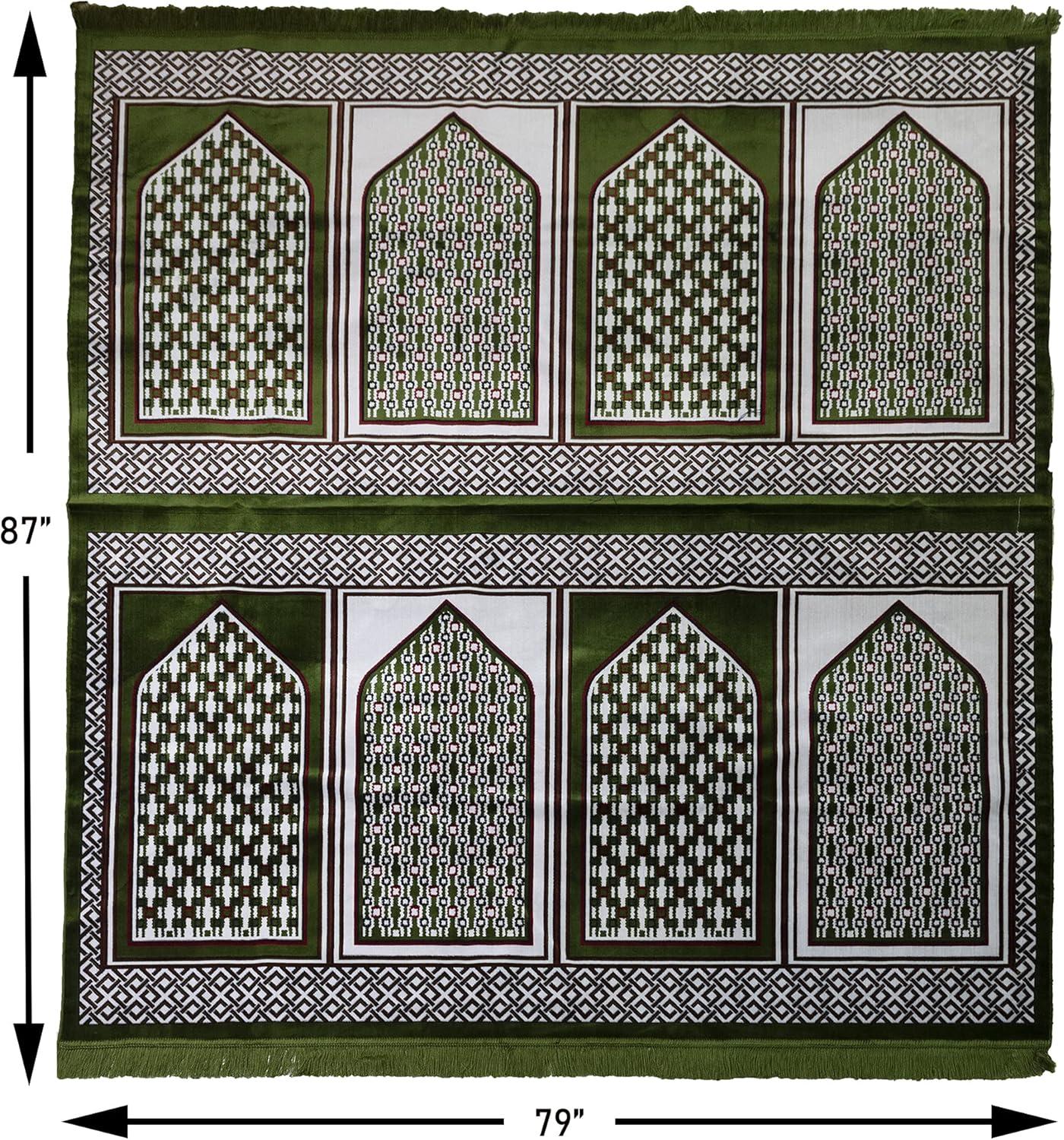 Modefa Turkish Islamic Prayer Rug - Large Gathering & Group Praying Carpet - Wide Plush Velvet Praying Mat - Multi Person Muslim Janamaz Sajada for Family - 8 Person (Red #3)(Green #2)