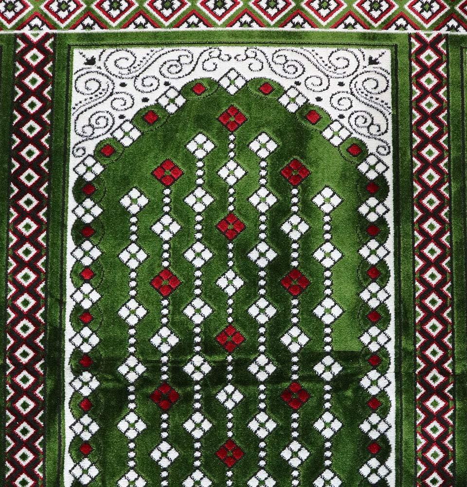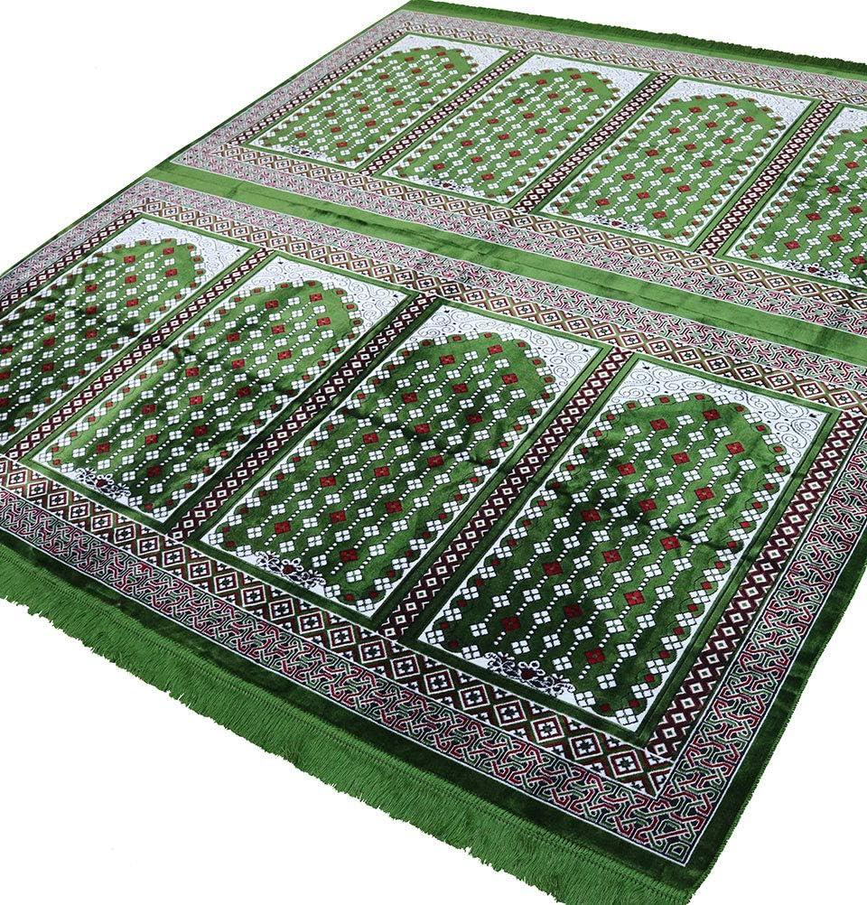 Modefa Turkish Islamic Prayer Rug - Large Gathering & Group Praying Carpet - Wide Plush Velvet Praying Mat - Multi Person Muslim Janamaz Sajada for Family - 8 Person (Red #3)(Green)