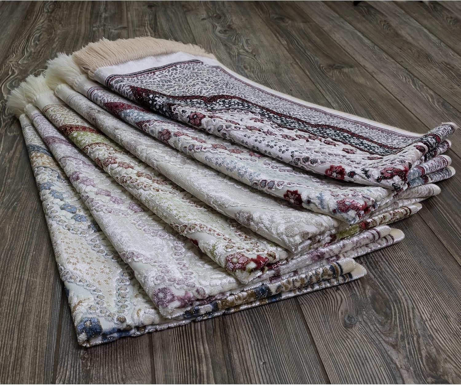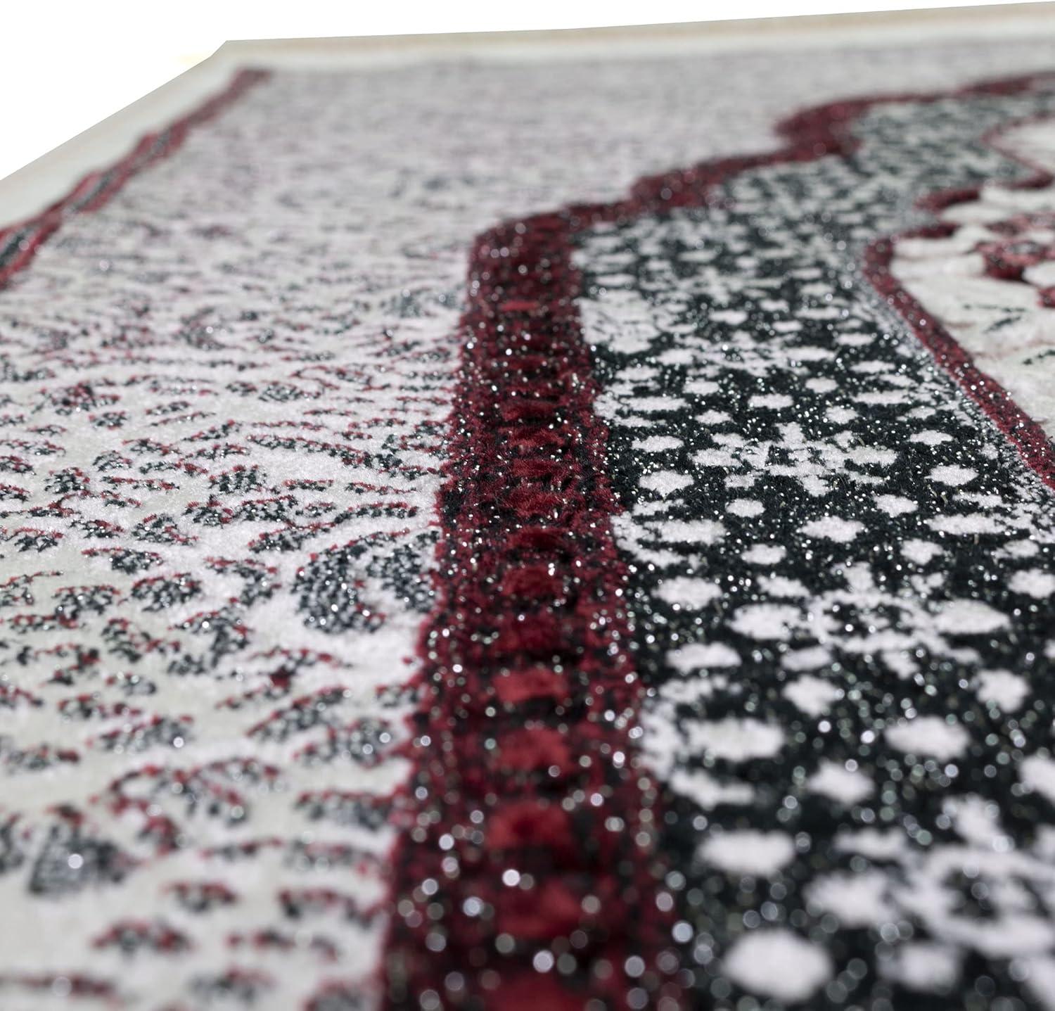 Why We Love It—> The shimmer and shine combined with the cool tones and colors calls to mind the dark and mysterious winter days! Combined with its dense velvet and quality craftmanship that our luxury rugs are known for, and you've got a one of a kind piece that will leave you in awe! Available in several beautiful colors and is the perfect Islamic gift or Eid gift or Ramadan gifts! Your loved ones will surely be impressed by the beauty and quality of our prayer mats.