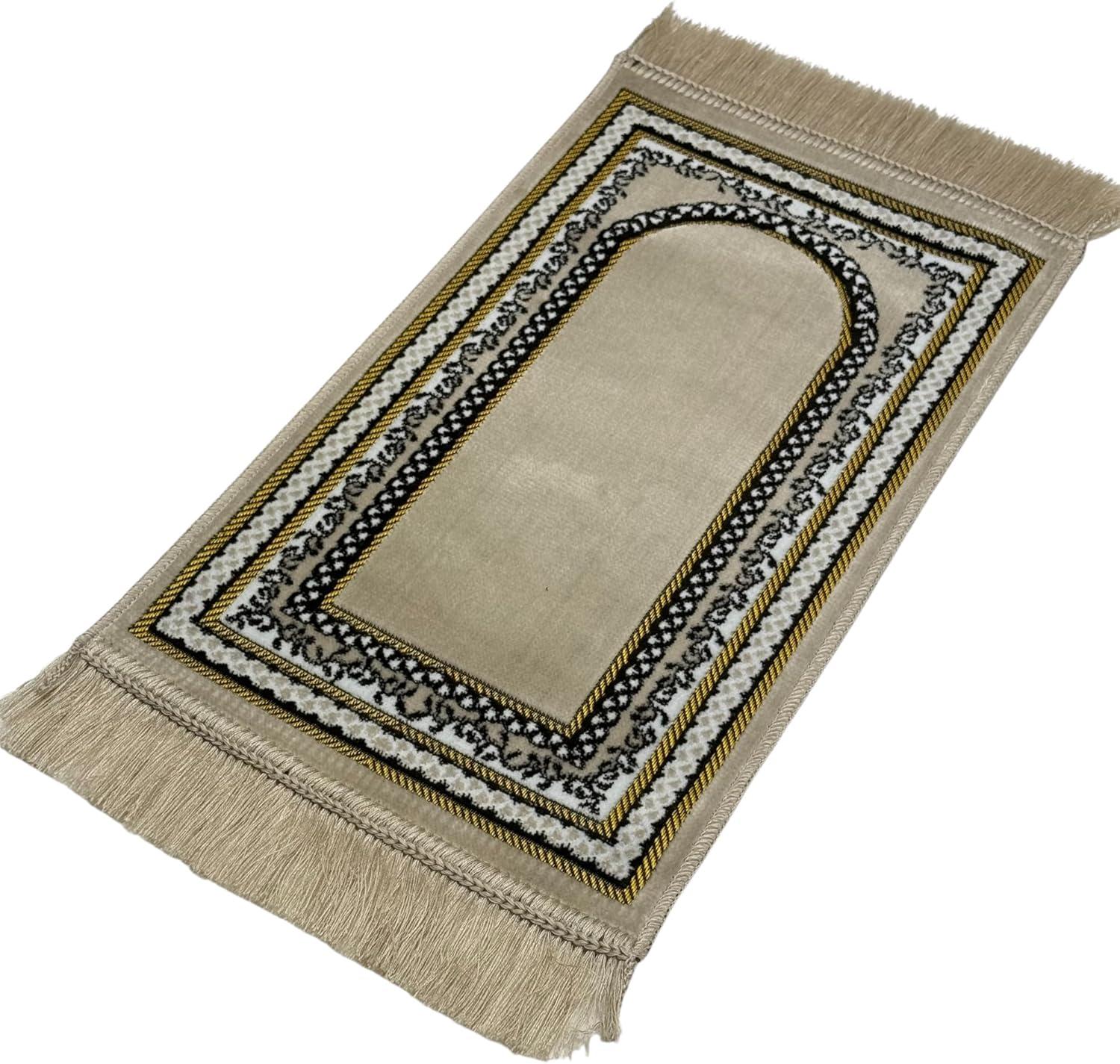 imageModefa Turkish Islamic Velvet Prayer Rug  Soft Small Child Praying Carpet  Muslim Janamaz Sajada for Kids ampamp Toddlers  Ramadan or Eid Gift for Boys ampamp Girls  Lattice RedVine Border Arch Beige