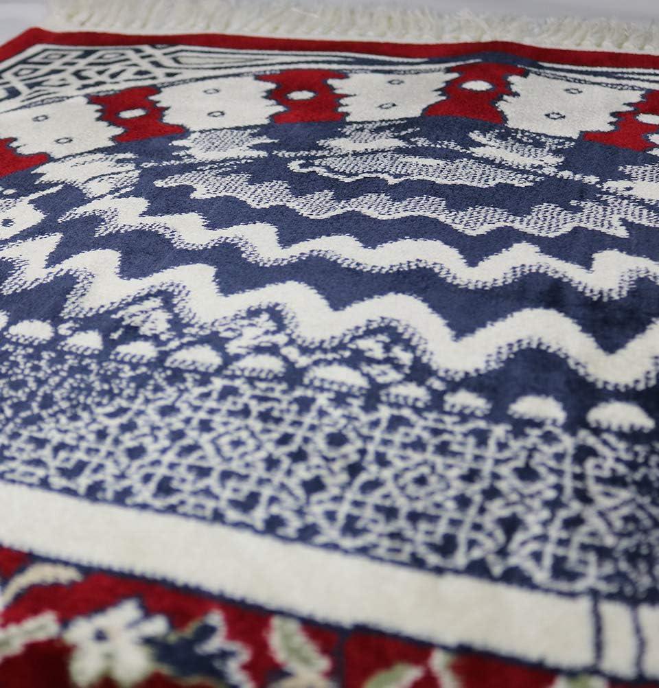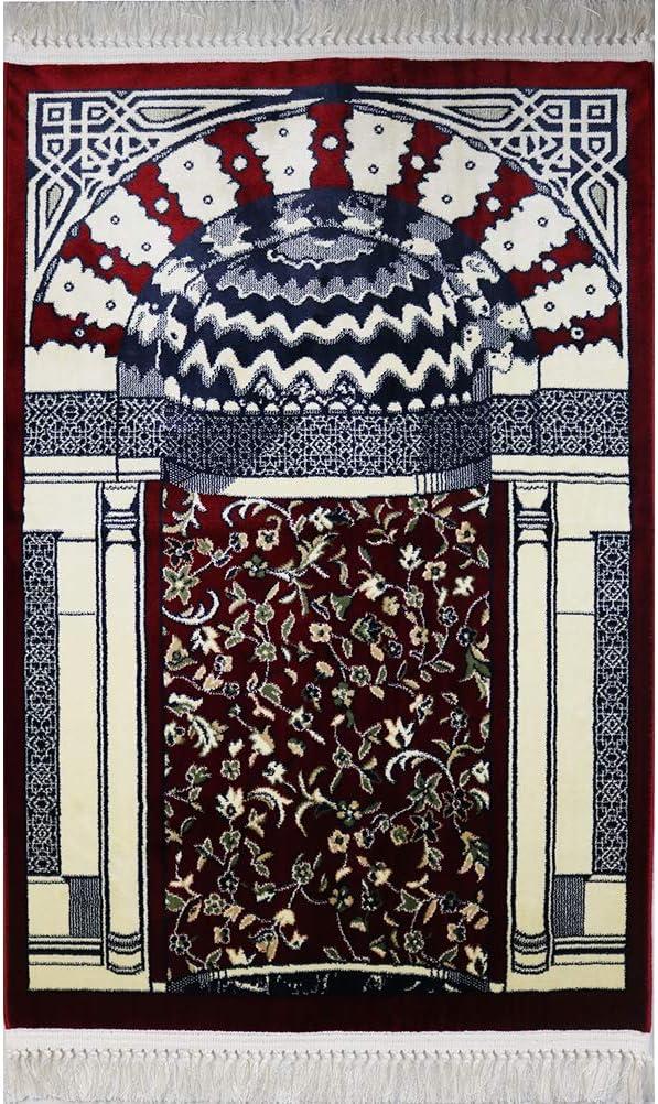 Modefa Islamic Praying Rug with Mihrab Floral Pattern —> Modefa has been bringing you quality, affordable salah mats since 2011, and this kilim style prayer carpet is no different; it includes soft velvet and a thick, durable backing. The thickness and softness helps to provide Muslims with a comfortable experience during salat. A great quality Turkish prayer rug for the price!