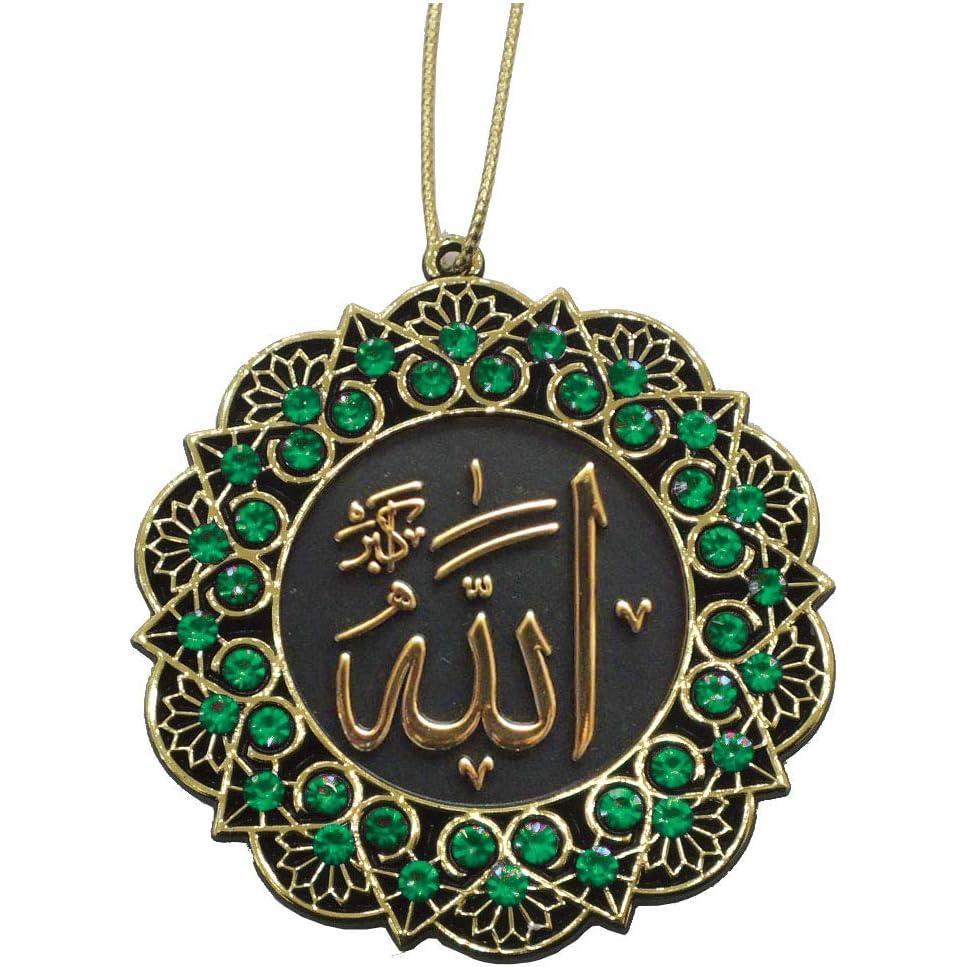 A unique addition to our home decor line! This star shaped, double sided car hanger features Allah and Muhammad in intricate Arabic calligraphy. The rhinestones embedded throughout are an exquisite final touch, making this piece the perfect car accessory! Available in several awesome colors! Material: Plastic Diameter: 7cm (2.75in) Cord length of each may differ slightly; varies between 6 inches (15cm) and 9 inches (23cm) Made in Turkey