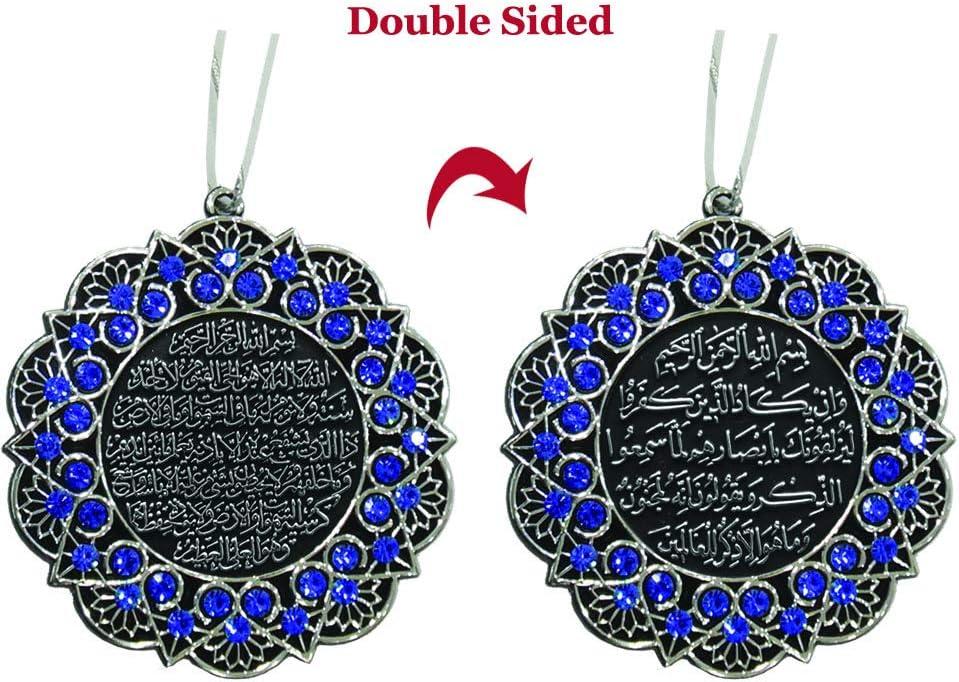 imageTurkish Islamic Ottoman DoubleSided Ayatul Kursi Nazar Dua Star Shaped Car Rear View Mirror Hanger Medallion Pendant Accessory GoldWhite 7cm 275inSilverBlue